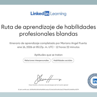 Comunicación pedagógica clara y motivadora. Liderazgo inspirador y orientado a resultados. Negociación estratégica y gestión de acuerdos complejos. Adaptabilidad en entornos multiculturales y de cambio. Empatía, asertividad y capacidad de generar confianza. Innovación constante y pasión por mi trabajo