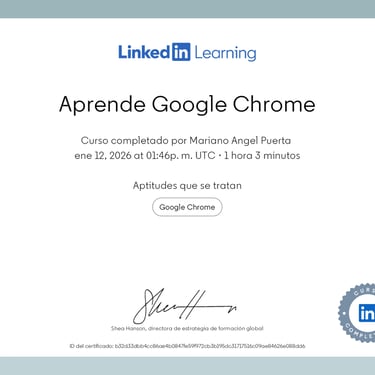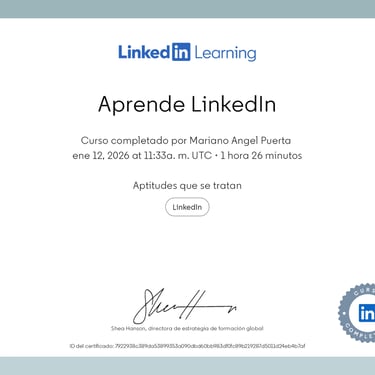 Software: Microsoft Office y Navision/Dynamics 365, SAP, Linux, Canva, Metricol, Social Gest, Discord, Deepl, ChatGPT, Grok, Gemini, Moodle y varias docenas más, usuario.