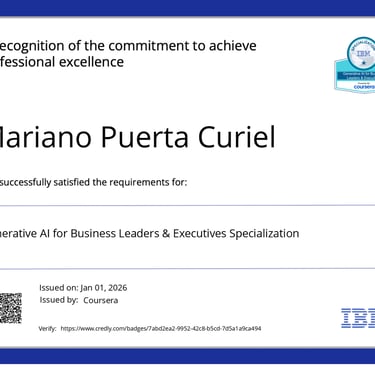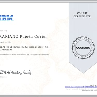 • Generative AI for Executives and Business Leaders Certificate of Specialization (IBM)
